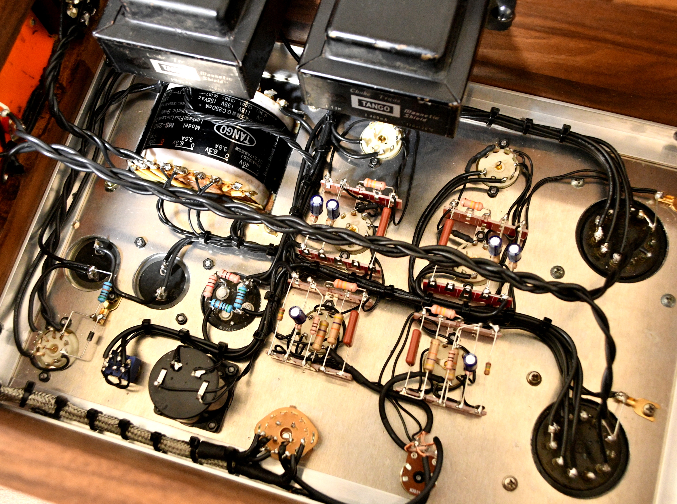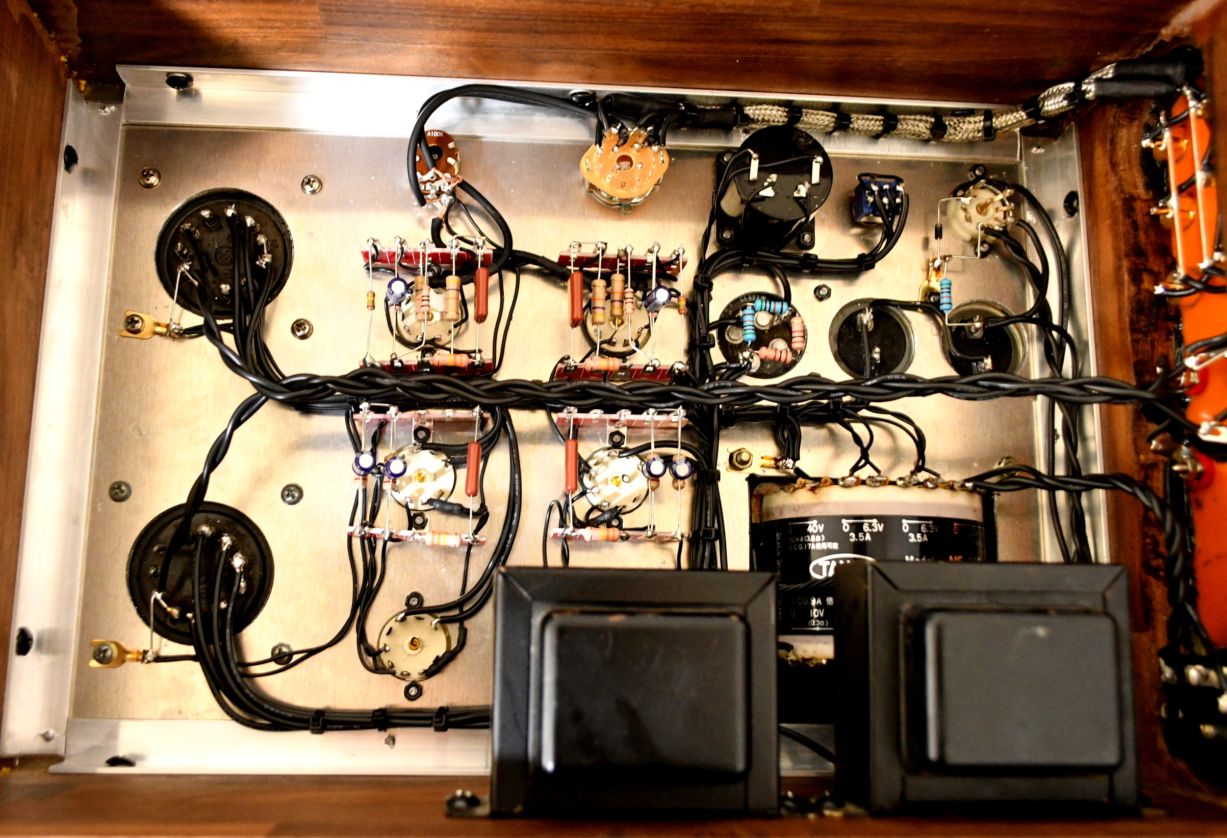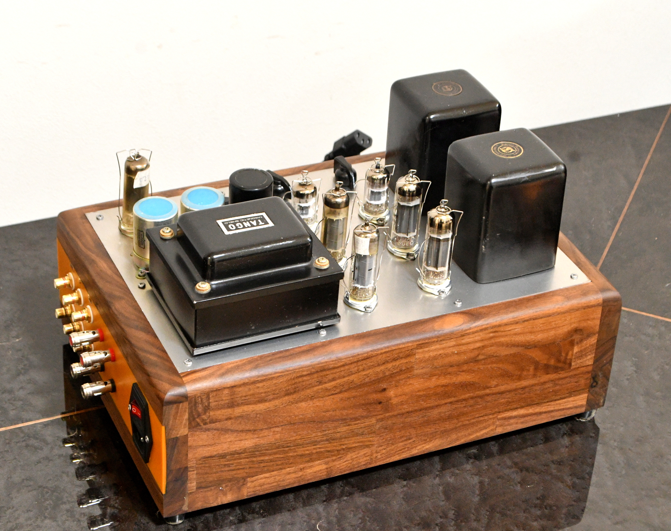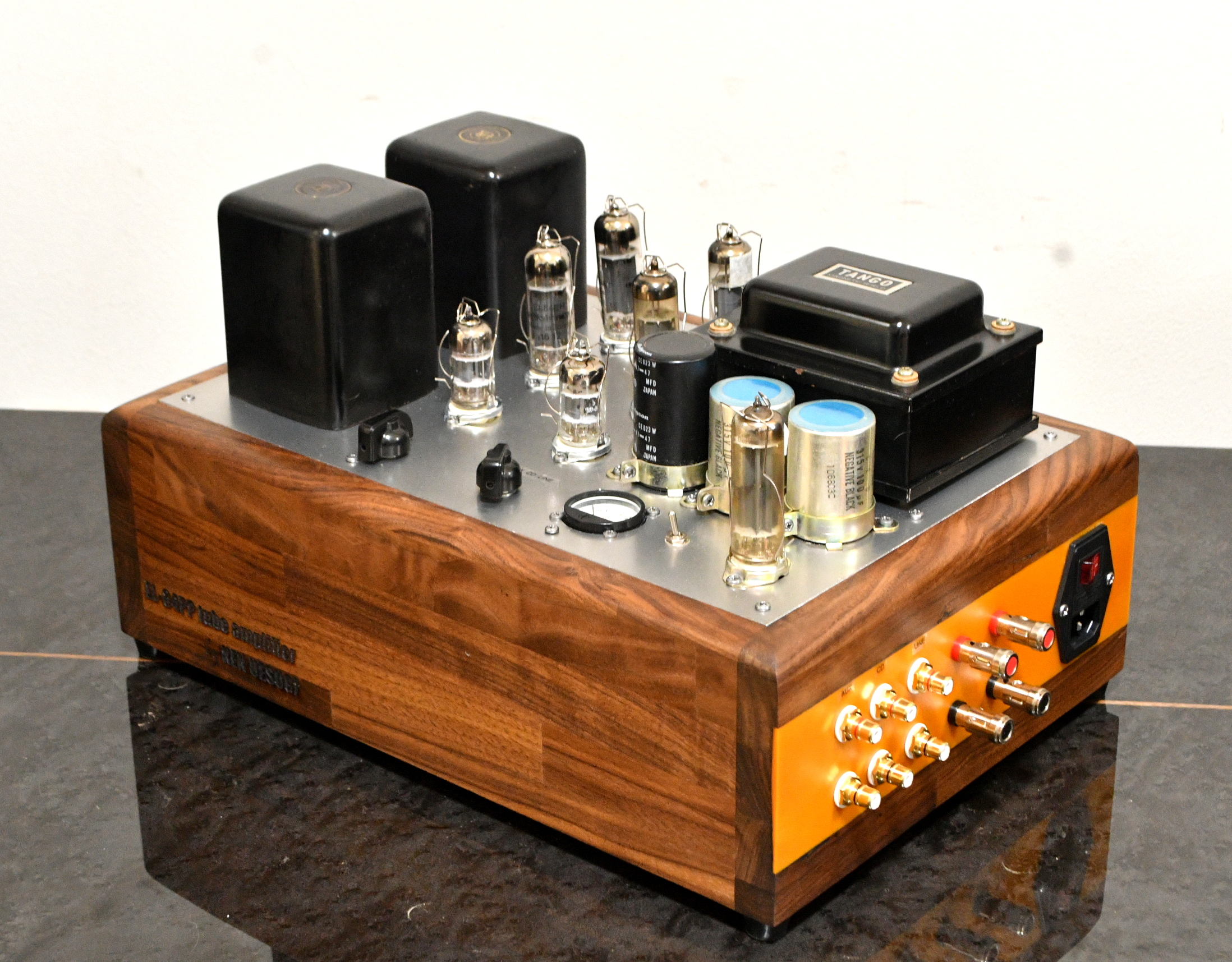 This use prestage and driver tube 12AT7(12Y7, 12AU7), EL-84 PP with max 13W. If using in triode mode, max power will be around 7-8W. Very beautiful and clear sound.