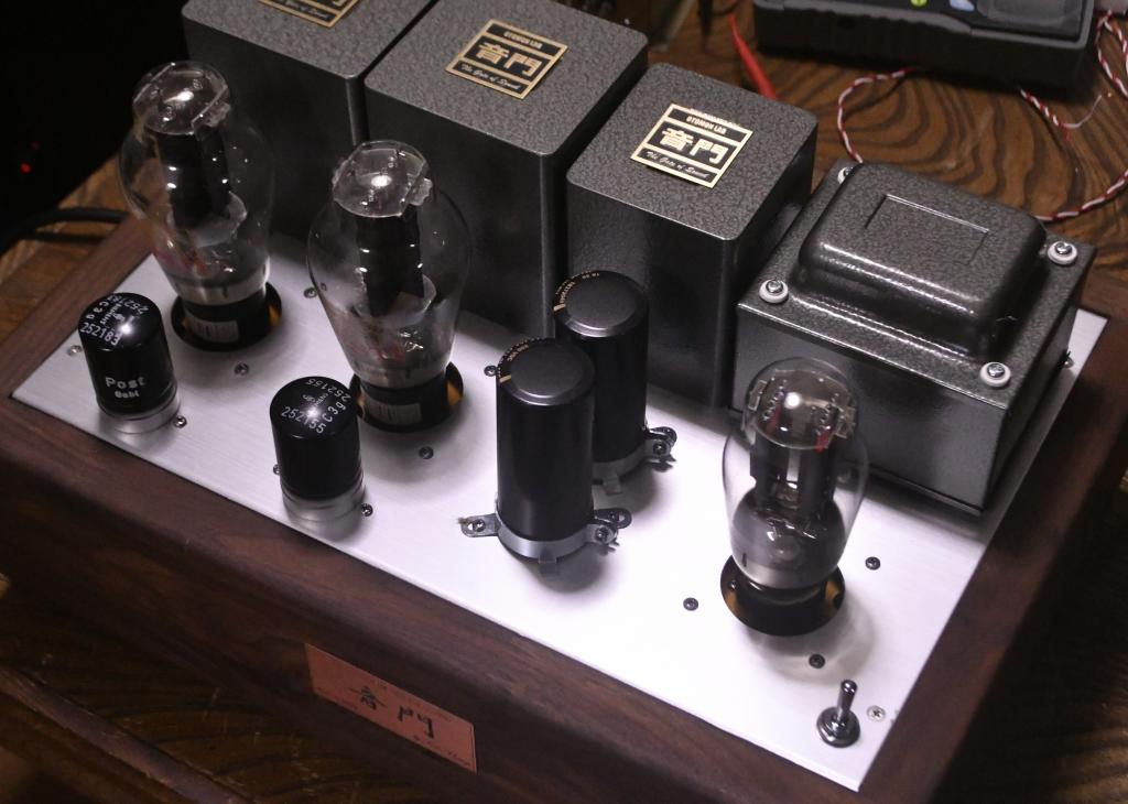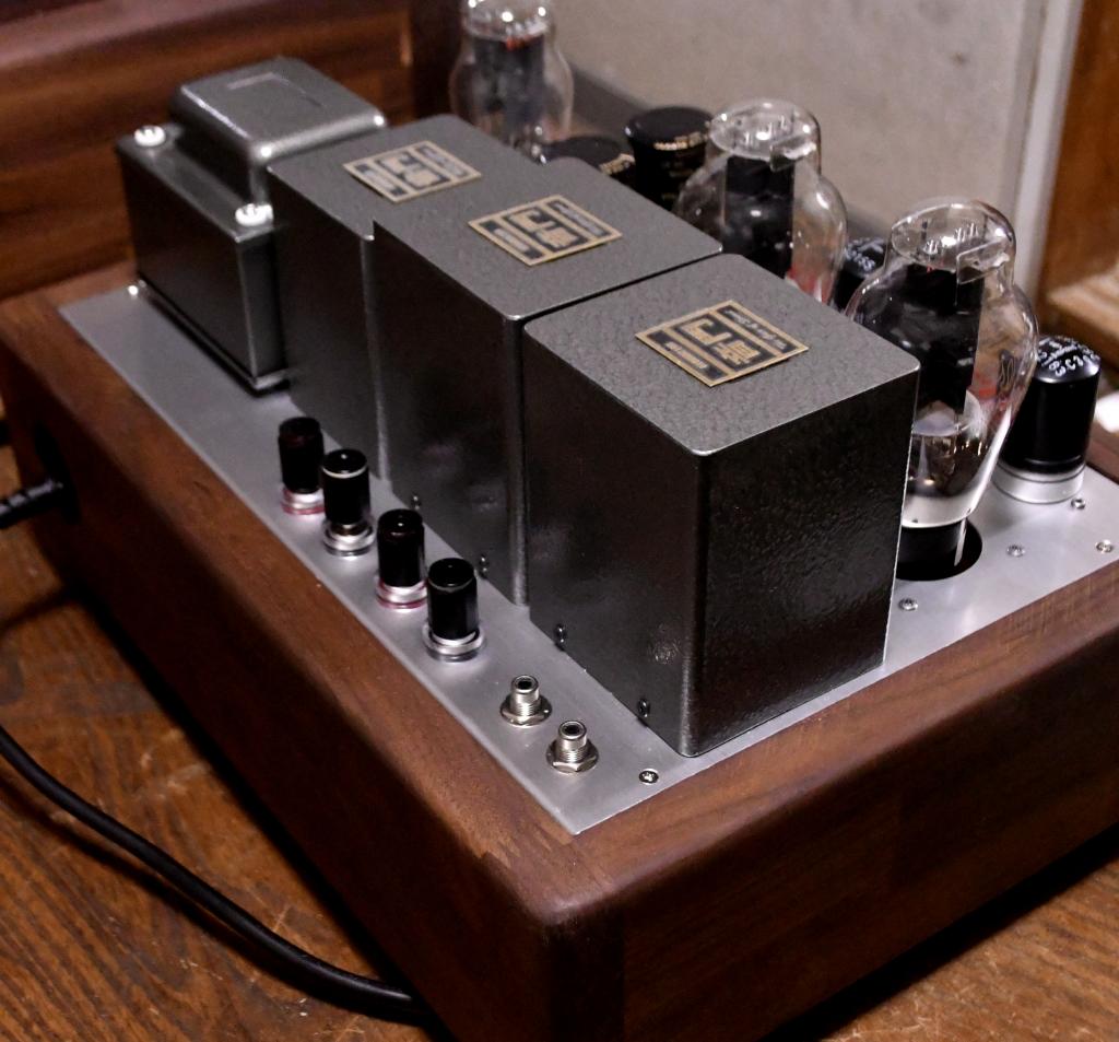 It is stereo SE amplifie using 300B tube as power tube. Output is 8W. Walnut wooden case with top class parts. Driver tube is C3g. No NFB specification.