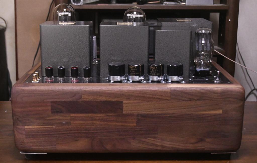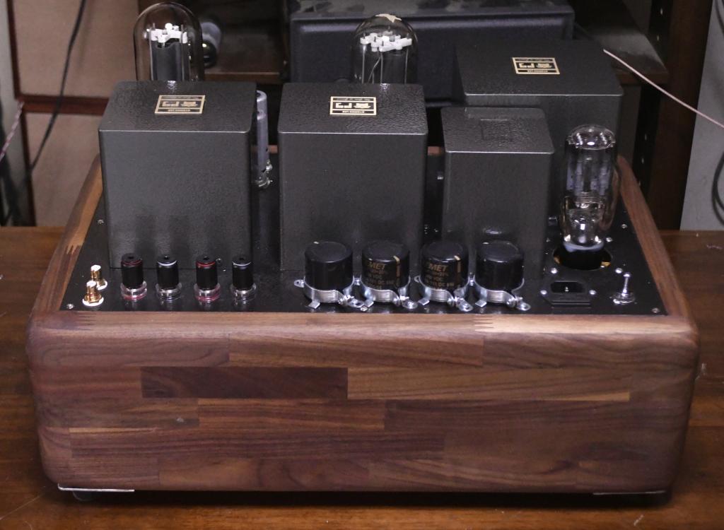 211 SE tube amplifier with output 18W. All transformers are special order made from ISO (TANGO). Input volt is 117V. Prestage is 12AT7, secondary tube is 5687. Rectifier tube 5U4G, GZ34, 5AR4, 5R4GW.