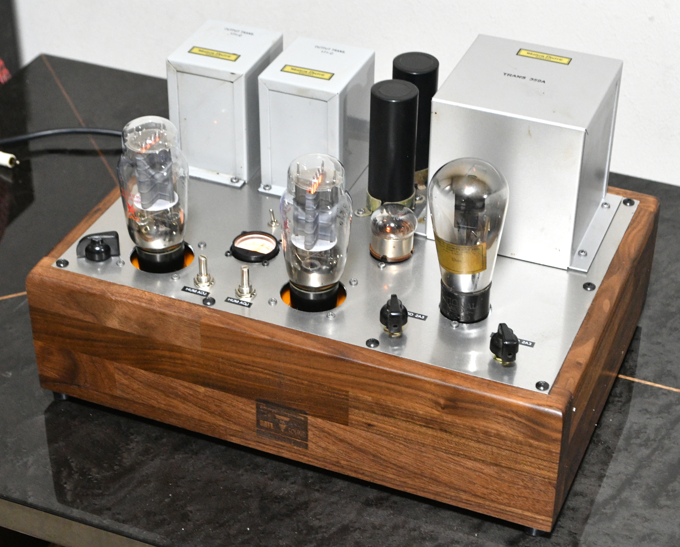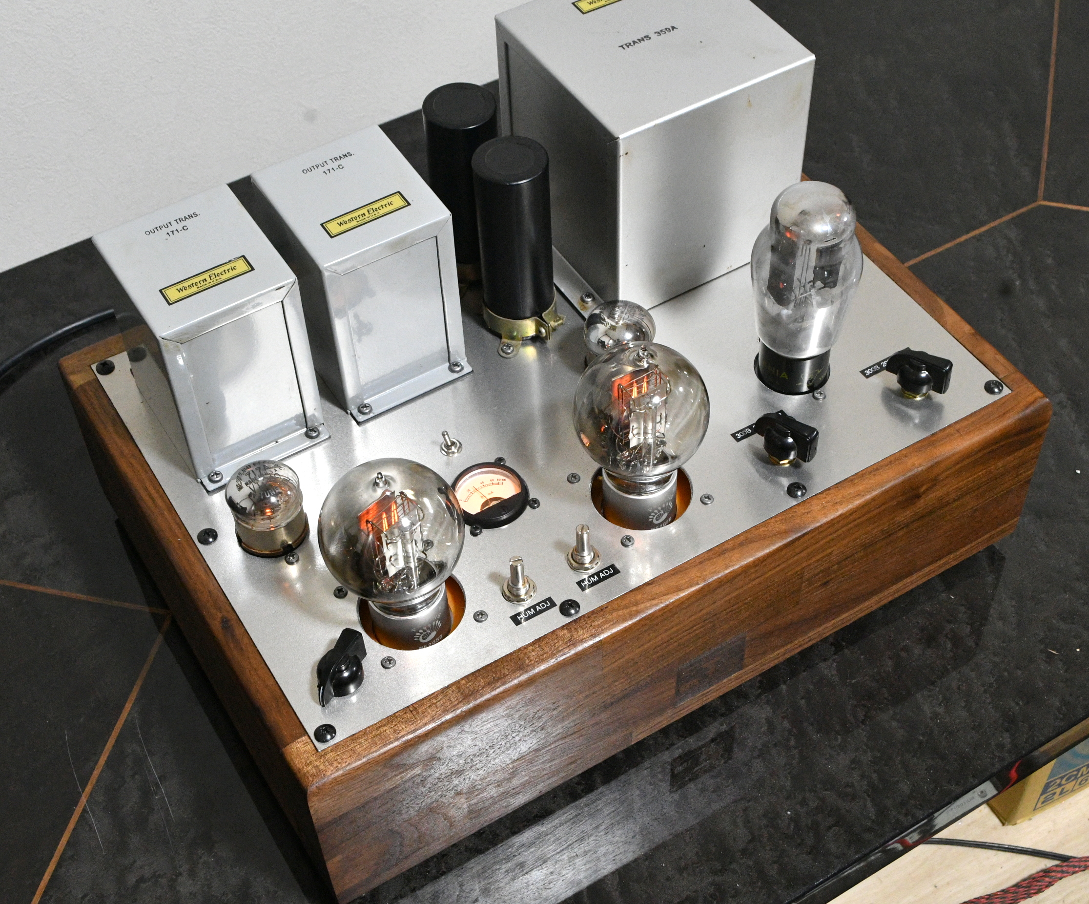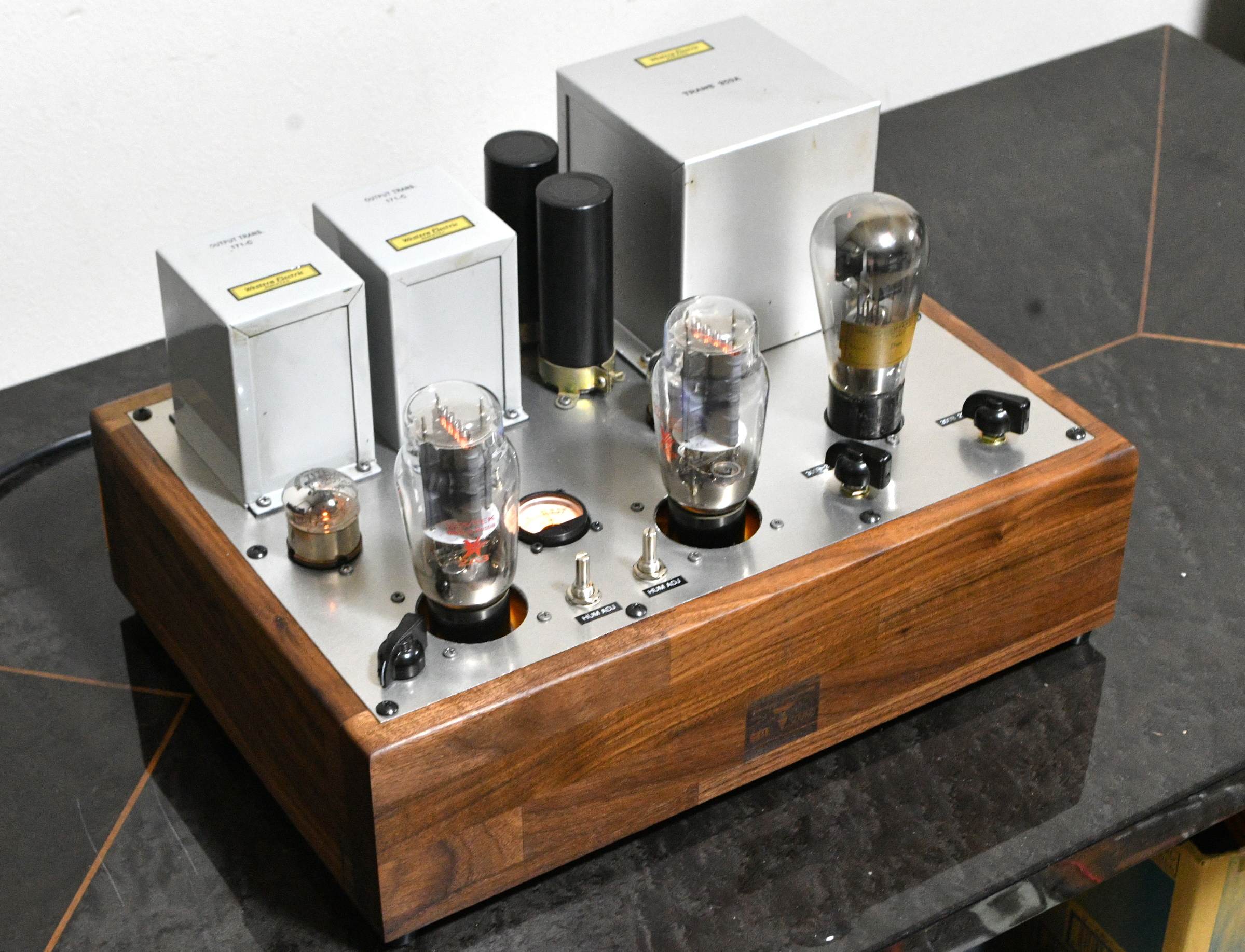 Driver tube is 717A (6SJ7), you can use 3 kinds of tubes with this amplifier, output power is around 5W (300B tube), 3.5W(2A3), 1.5W(205D) but the sound is amazing with rich, sweet and very musical sound.