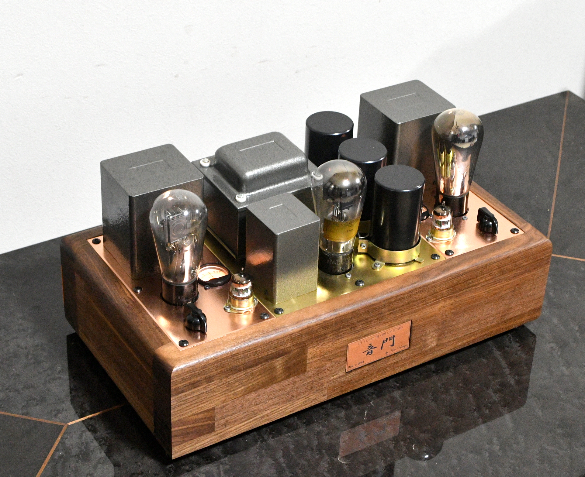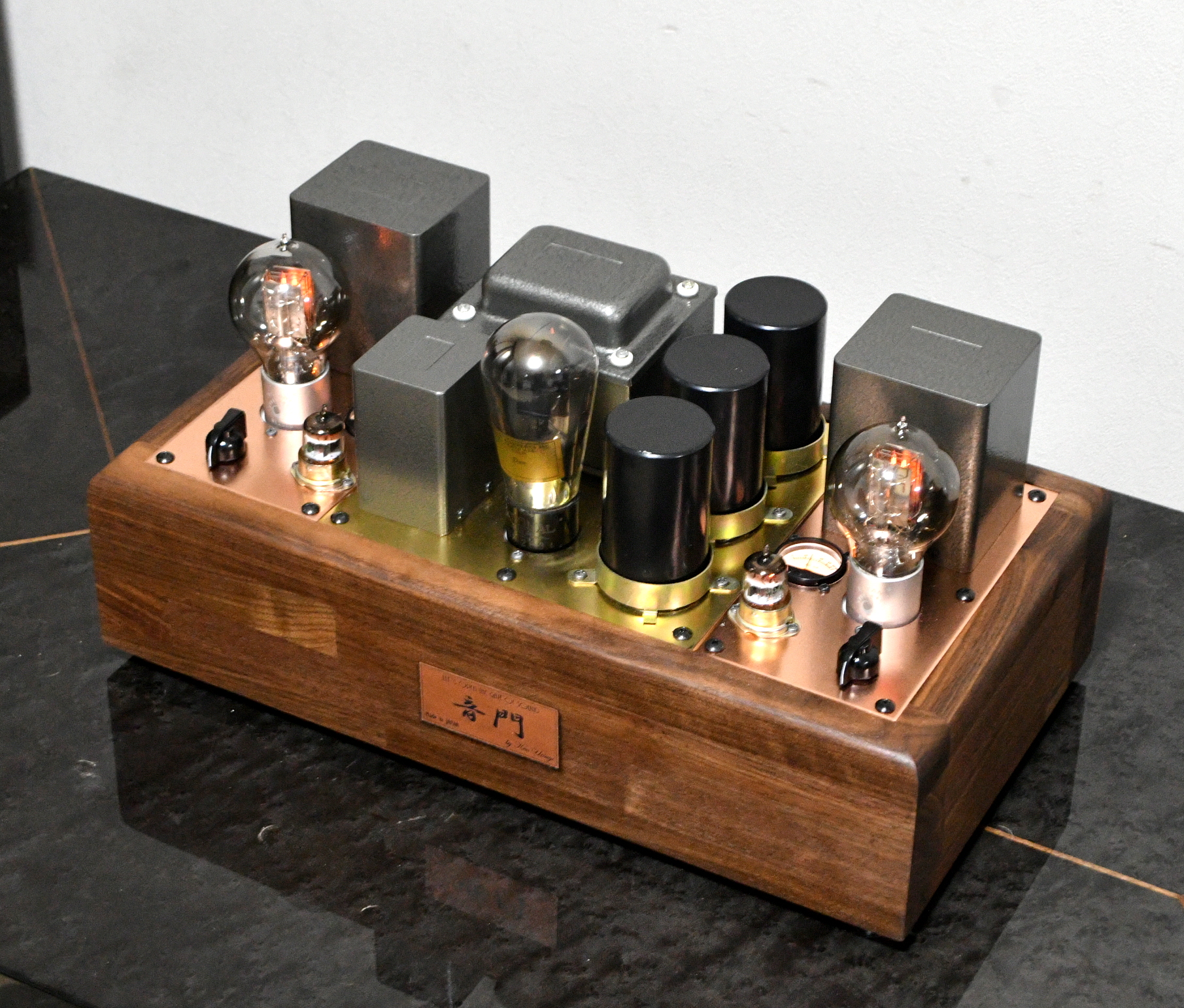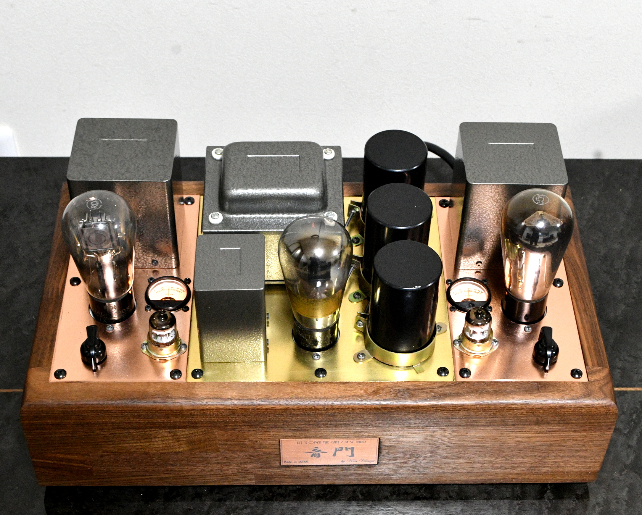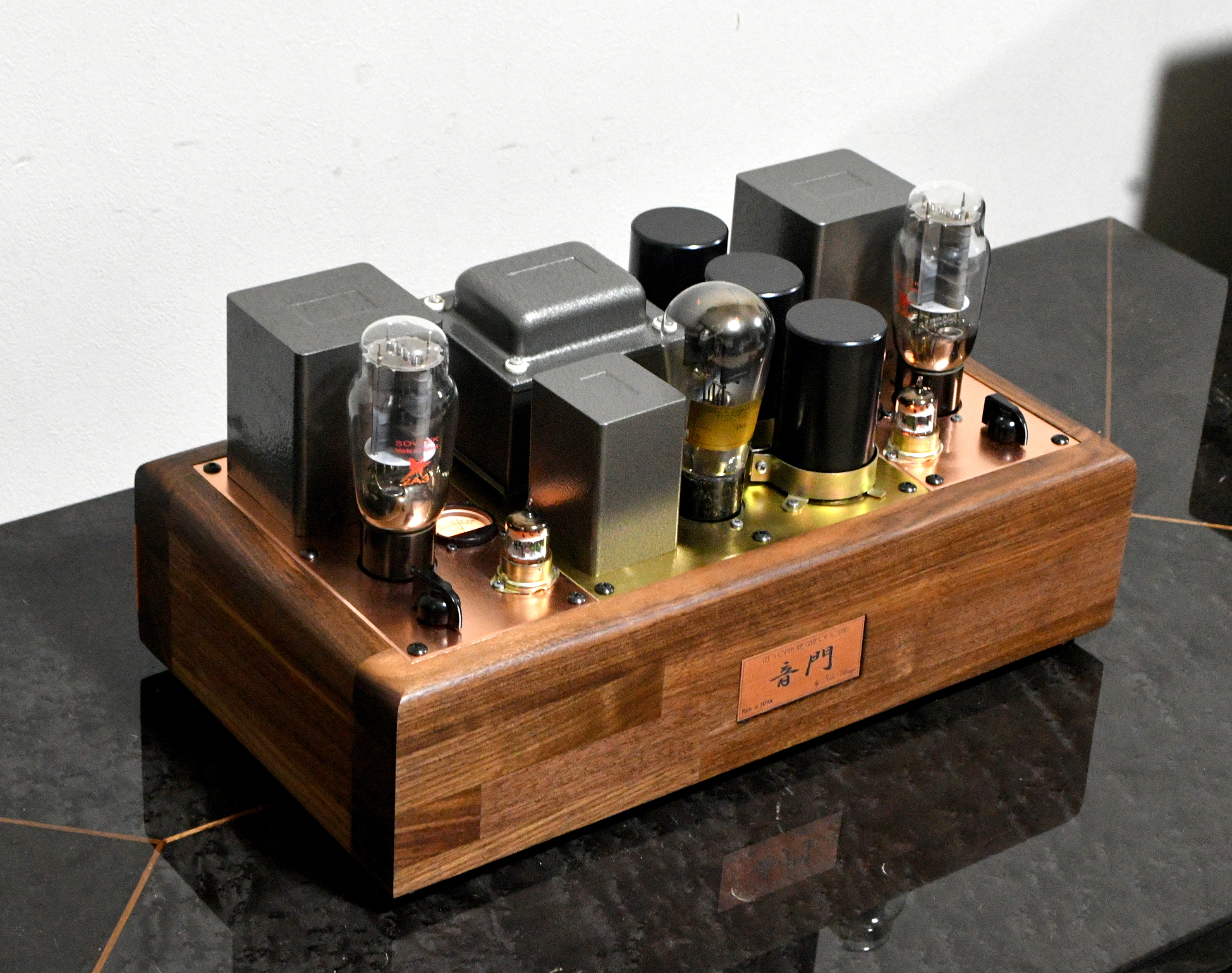 The top plate use both copper and gunmetal 3mm. Chassis is Walnut 4cm thick.