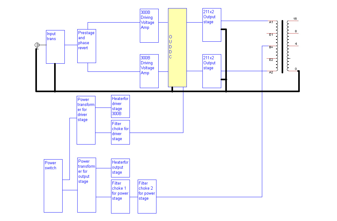 This amplifier is 211 Para pushpull amplifier, drive stage is 300B PP, so it is called double Pushpull, generate 160W of power at THD 5%, Zero Negative feedback.