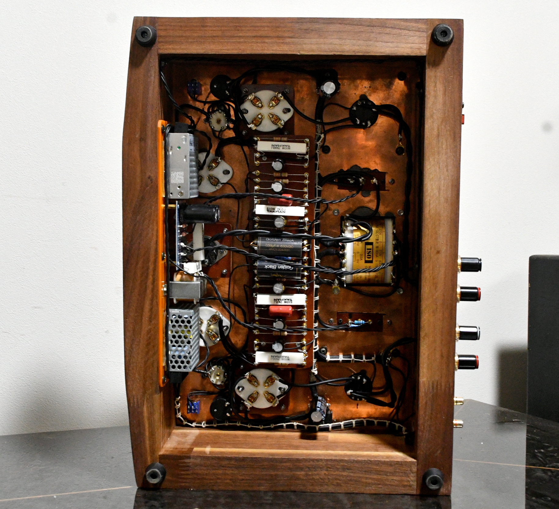 Generally, 300B tube gerenrate 7-8W(THD 5%) of power but with this special circus, amplifier reach 10W at 5% THD.