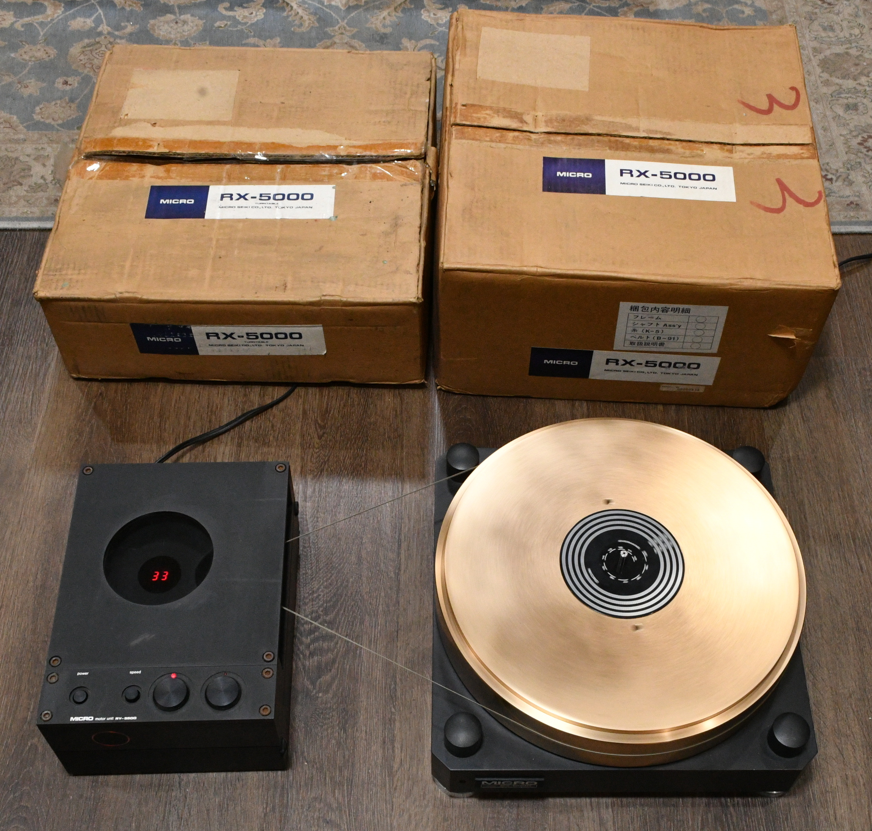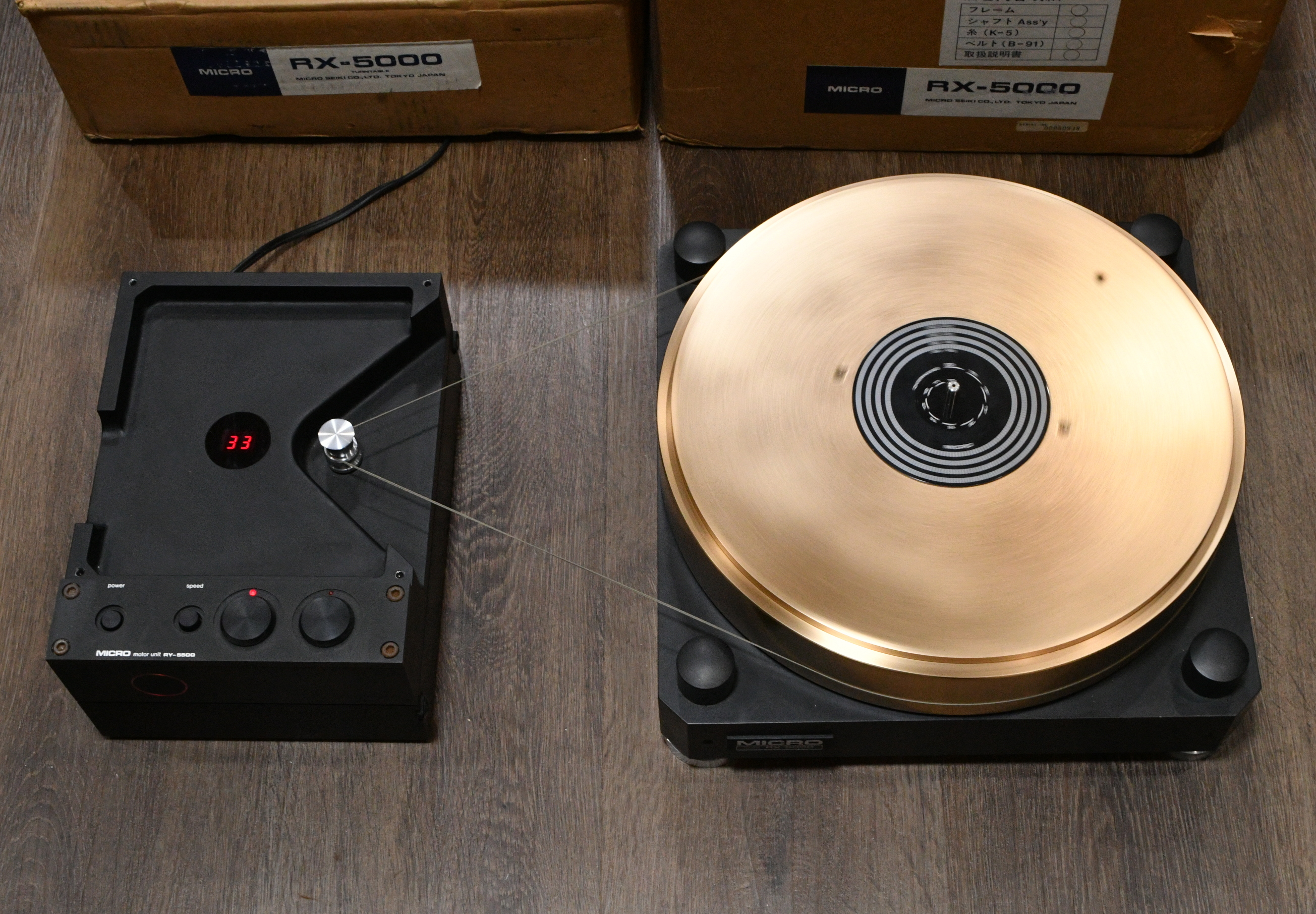It is very very rare turntable RX-5000 with RY-5500D motor. Perfect working condition, motor is quite silent and accuracy. There are some light marks but in overall it is beautiful one.