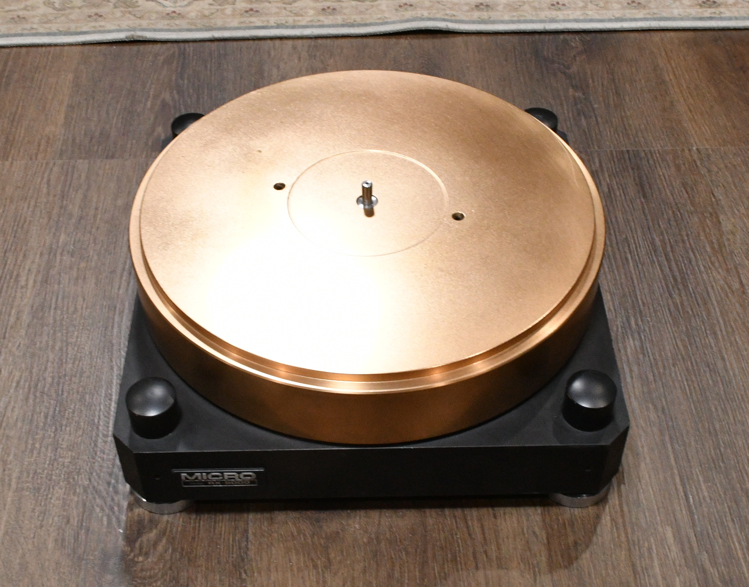It uses gun metal flatter which research by Micro seiki for best sound ever. Flatter is 20kg, base is approximately 30kg.